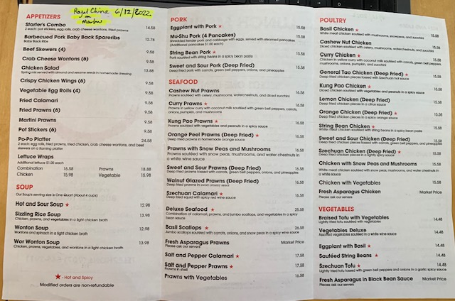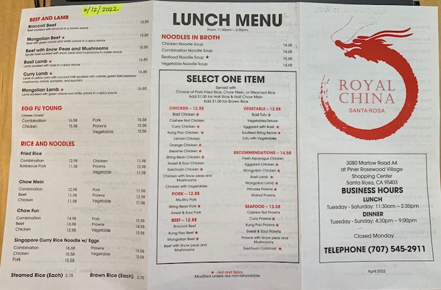 Royal China Restaurant - Santa Rosa Menu