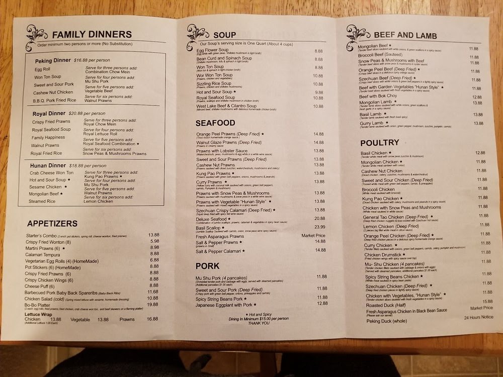 Royal China Restaurant offers a balanced menu that blends familiar Chinese favorites with carefully prepared dishes, perfect for both casual lunches and relaxed dinners. The menu features thoughtfully portioned plates that invite sharing, making mealtime a comfortable and unhurried experience.